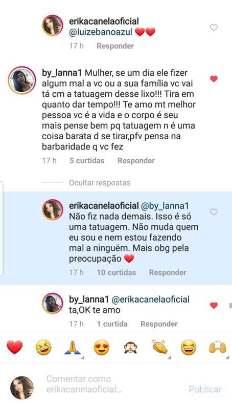 “Não me arrependo de ter feito a tatuagem mas não posso deixar de temer por essas pessoas que parecem não ter limites”, falou Erika.