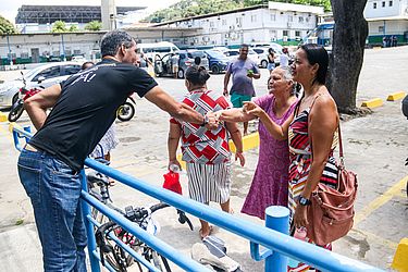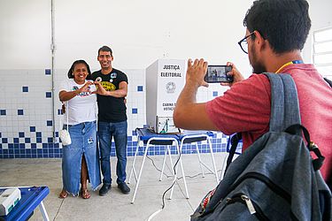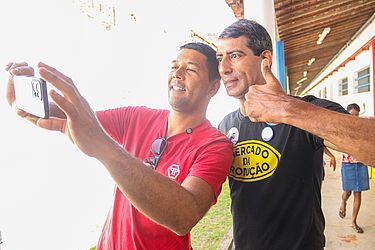 Lobão chegou sozinho e cumprimentou e tirou fotos com os eleitores que votam nas seções deste local de votação.