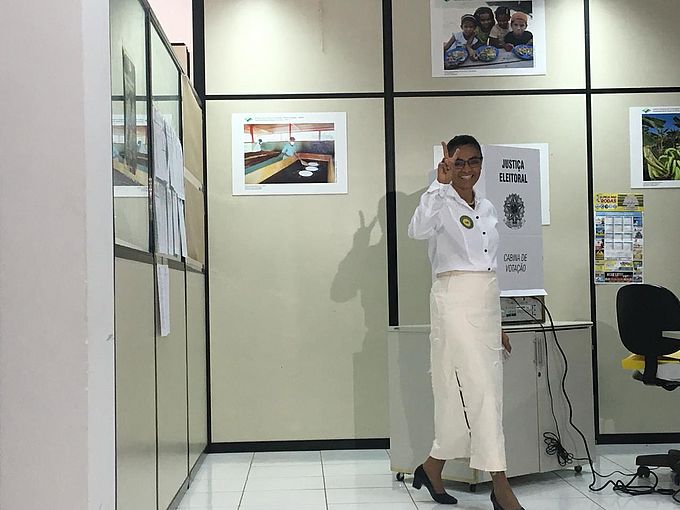 A candidata Marina Silva (Rede) votou por volta das 9h30 no horário do Acre (11h30 no horário de Brasília), no Instituto de Colonização e Reforma Agrária (Incra), em Rio Branco, capital do Acre. A presidenciável demorou apenas dois minutos para concluir a votação.