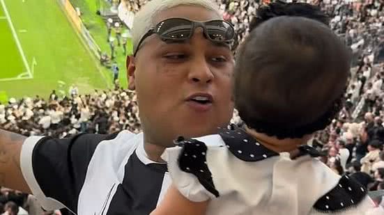 A foto com a filha Zoey foi postada pelo funkeiro minutos depois da apresentação dos colegas. "Mostrando para a minha princesinha o timão".