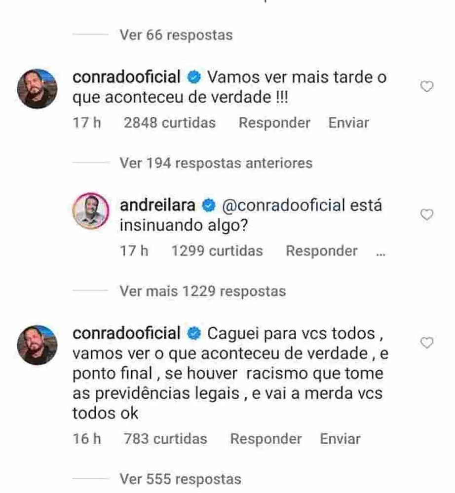 Conrado resolveu opinar sobre o ataque racista sofrido por Titi, de nove anos de idade, e Bless, de sete anos, filhos de Giovanna Ewbank e Bruno Gagliasso. No Instagram, através dos comentários de uma publicação que reproduzia a notícia, o cantor duvidou que último domingo (37/07) que uma mulher branca que Giovanna brigava em um restaurante à beira-mar em Portugal praticou crime de ódio.