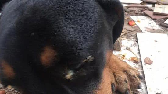 Um cão da raça rottweiler, vítima maus-tratos, foi resgatado de uma residência no bairro Benedito Bentes, em Maceió, na tarde deste sábado (03).