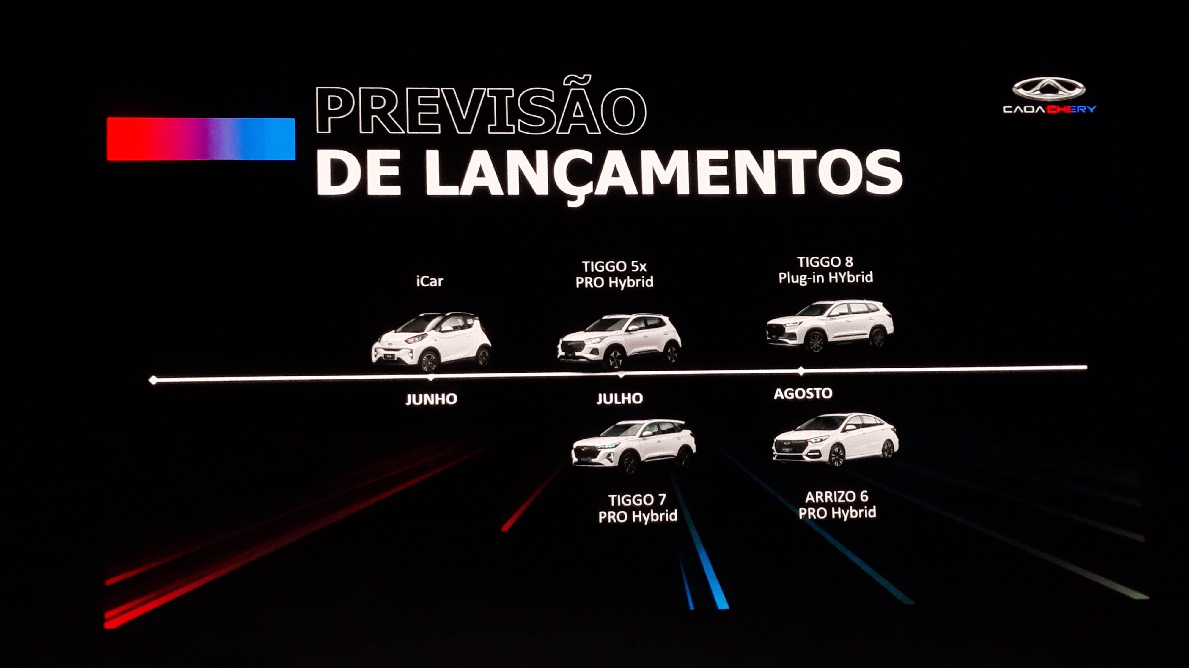 Os modelos começam a chegar já esse mês nas concessionárias. Primeiro chega o iCar, em julho os modelos Tiggo 5x Pro Hybrid e Tiggo 7x Pro Hybrid e em agosto o sedan Arizzo 6 Pro Hybrid e o Tiggo 8 Pro Plug-In Hybrid.