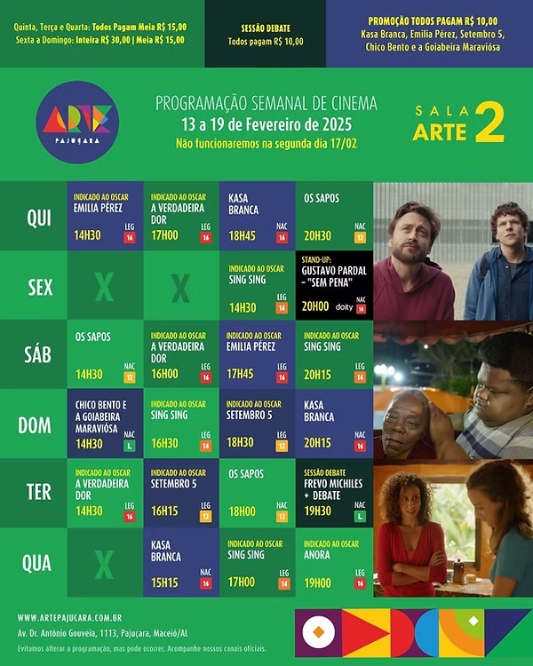 Disponível no: Arapiraca Partage Shopping, Centerplex (Shopping Pátio Maceió), Cinesystem (Parque Shopping) e Arte Pajuçara.