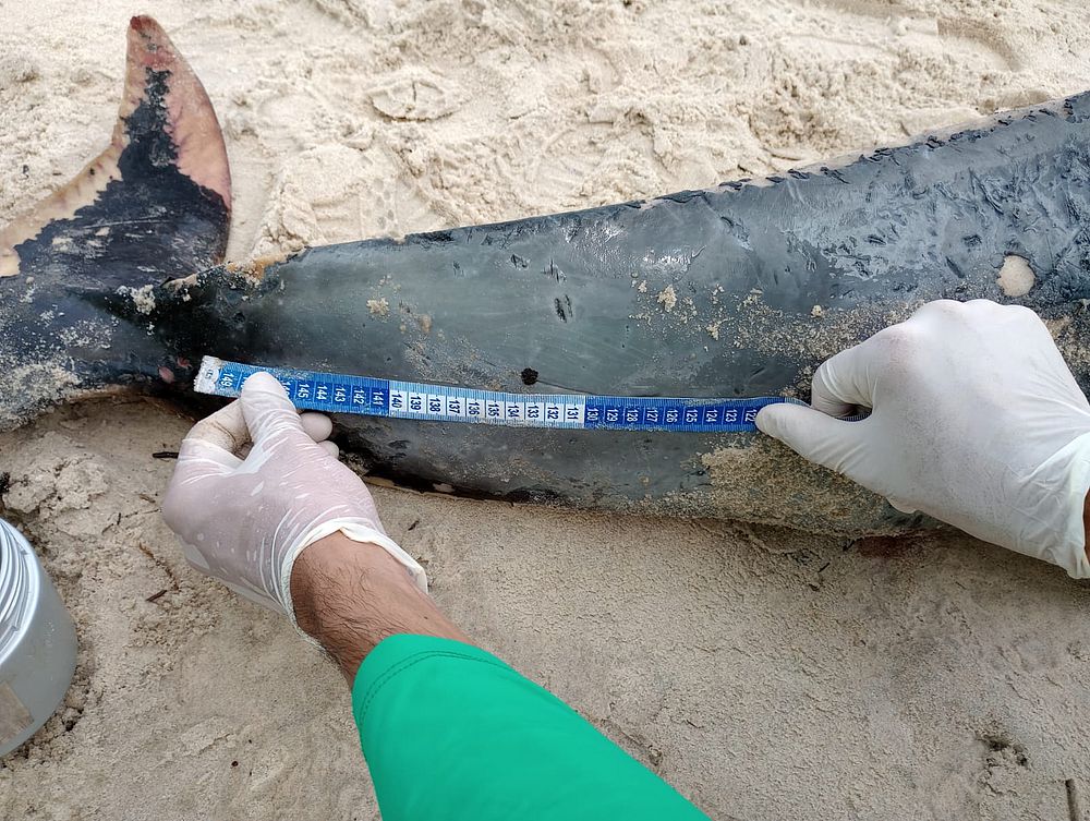 O animal estava em avançado estado de decomposição e apresentava uma mancha de óleo no corpo, segundo os ambientalistas, provavelmente ocasionada após a morte.Foram realizados os procedimentos necessários e, após a necrópsia, o animal foi enterrado sob a areia, na Praia do Francês. Leia o blog do Biota no TNH1.