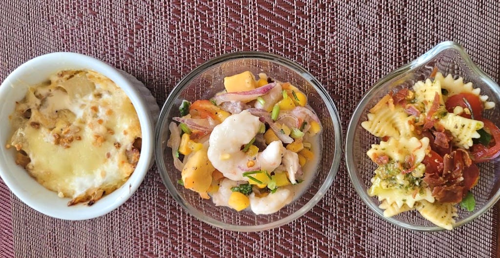 Cardápio para eventos: Escondidinho de carne, ceviche e massinha com farofa de presunto de Parma