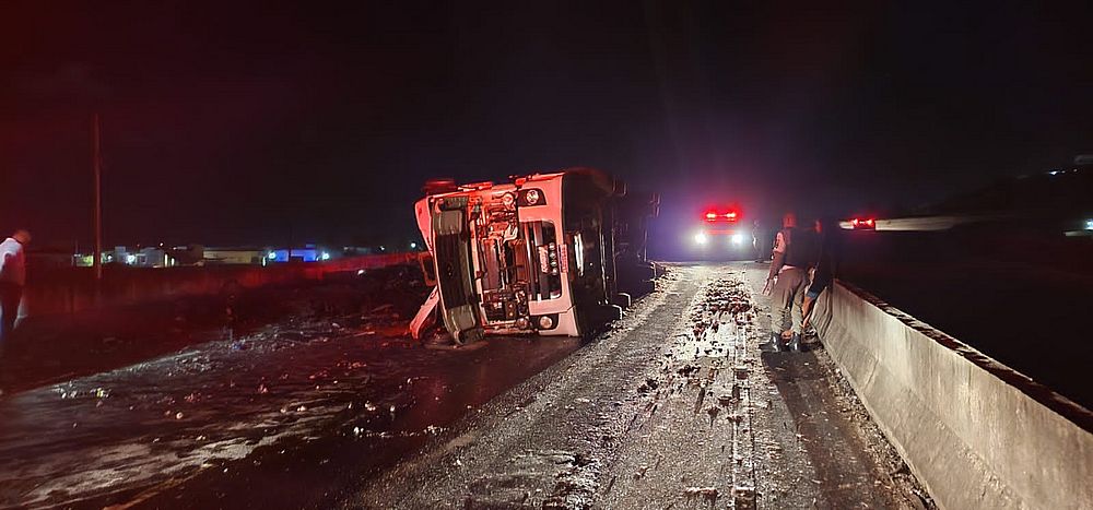 Segundo o Batalhão de Policiamento Rodoviário (BPRv), o caminhão colidiu em um objetivo fixo na pista e tombou em seguida. Após a chegada da Polícia Militar (PM), a área foi isolada, mas a carga já tinha sido praticamente toda saqueada por populares.