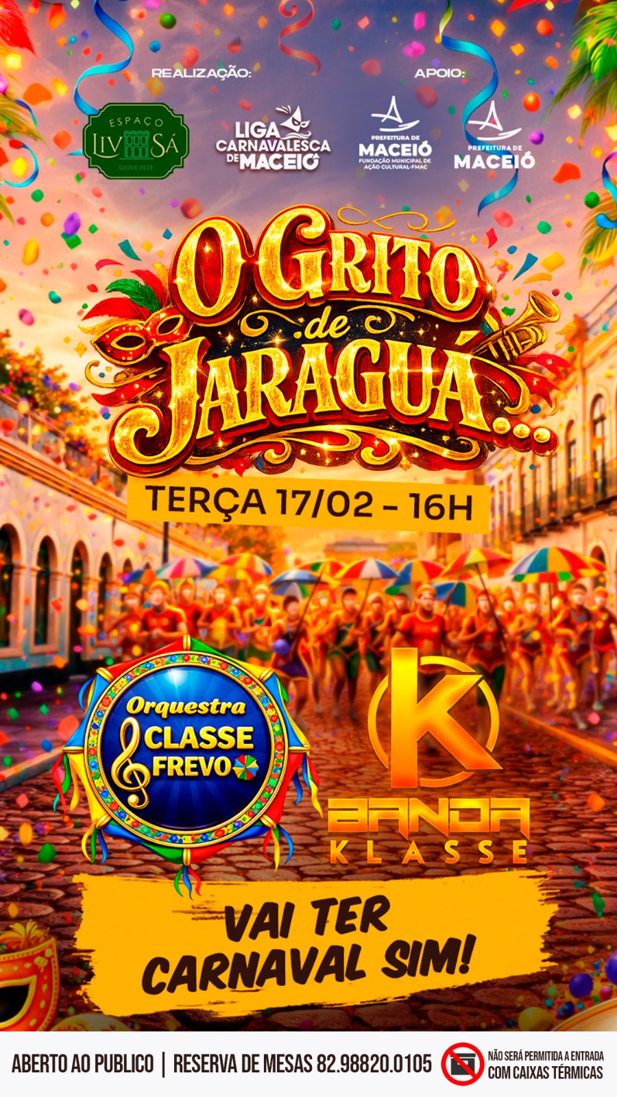 Mesas estarão disponíveis para venda a preços promocionais até 31 de janeiro, e a organização espera que o Grito de Jaraguá se torne uma tradição, potencialmente ampliando a duração do Carnaval em Maceió no futuro.