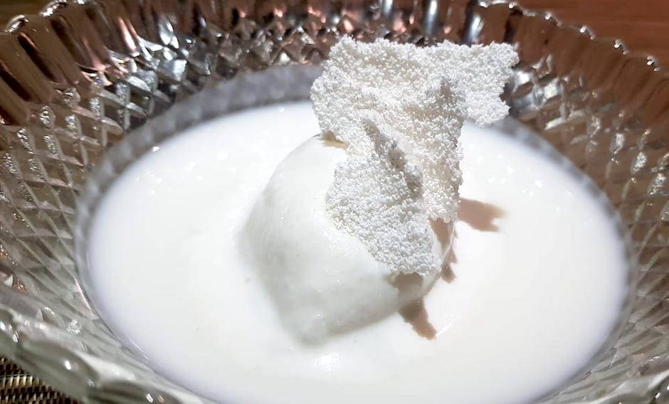 Fruta – O iogurte de graviola casou muito bem com o sorvete de coco e beiju, sobremesa para limpar o paladar. É simples e saborosa
