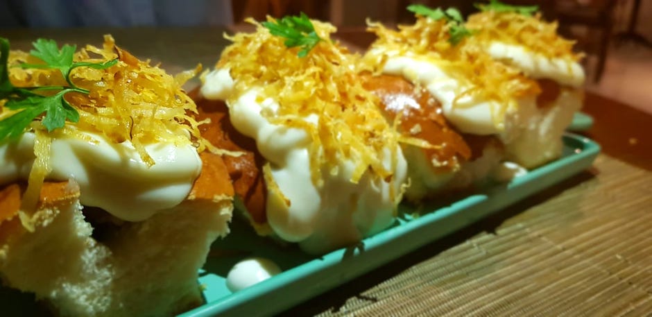 Lagosta – Outro clássico do Sur, o hot dog de lagosta com emulsão de PrimaDonna e macaxeira palha. São quatro sandubas para fazer a festa carnavalesca.