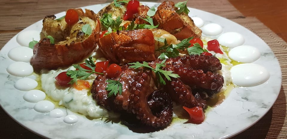 Duo do mar: lagosta e polvo com risoto