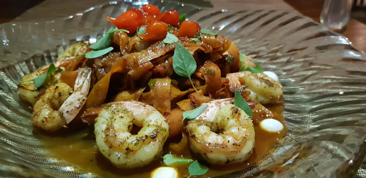 Leve – A cenoura na versão talharim é envolvida no molho de tomate artesanal com camarões. A receita não é apenas para quem deseja manter o corpo em forma durante o carnaval, mas porque a harmonização do legume com crustáceo é nota 10.