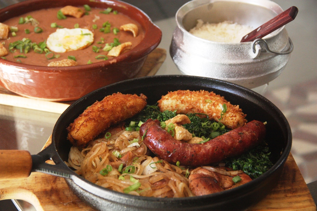 Divina Gula– O prato mineiro vem com feijão batido com torresmo e ovo. Na frigideira, bife de pernil suíno, linguiça caseira, couve, torresmo, banana milanesa e uma porção arroz. Na receita, o feijão é triturado e ganha um pouco de farinha de mandioca, representa a sustança para encarar novos desafios. A couve não pode faltar à mesa mineira, o legume é rico em ferro, proporcionando energia para se viver. Já a carne suína contam que o porco simboliza o progresso. Divina Gula: Av. Eng. Paulo Brandão Nogueira, 85 – Jatiúca, Telefone: (82) 3235-1016