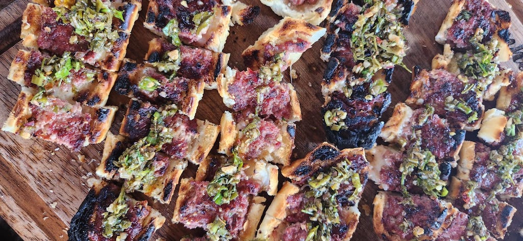 Linguiça Boi de Engenho com ervas no pão grelhado