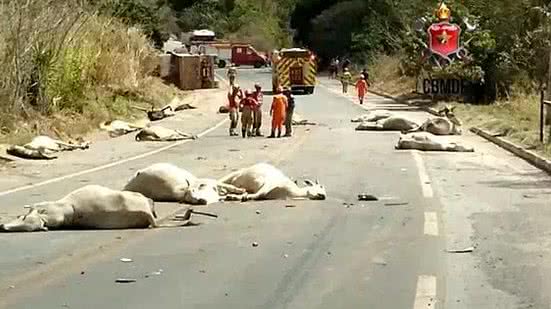 "O fato ocorreu em uma descida", dizem os bombeiros, que deslocaram 26 militares e seis viaturas para a operação. "Ao perceber os animais, [o condutor] não teve tempo hábil de frear o veículo."
