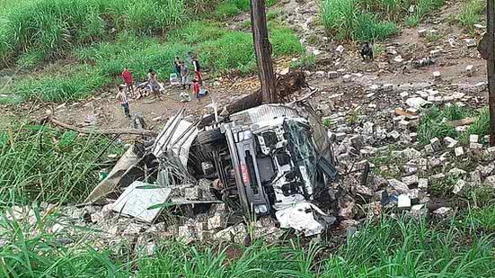 Uma pessoa morreu e outras duas ficaram feridas após uma carreta carregada com fardos de alumínio para reciclagem cair em uma ribanceira, na madrugada deste sábado, 17, na BR-104, em São José da Laje, interior de Alagoas.
