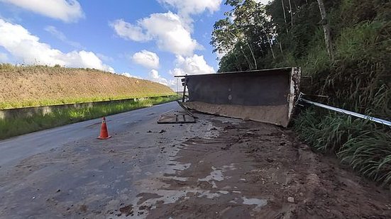 A Polícia Rodoviária Federal (PRF) está no local do tombamento e acompanha a situação. Os agentes colocaram cones no meio da pista para sinalização e até as 8h30 de hoje, apenas uma faixa havia sido liberada para tráfego.