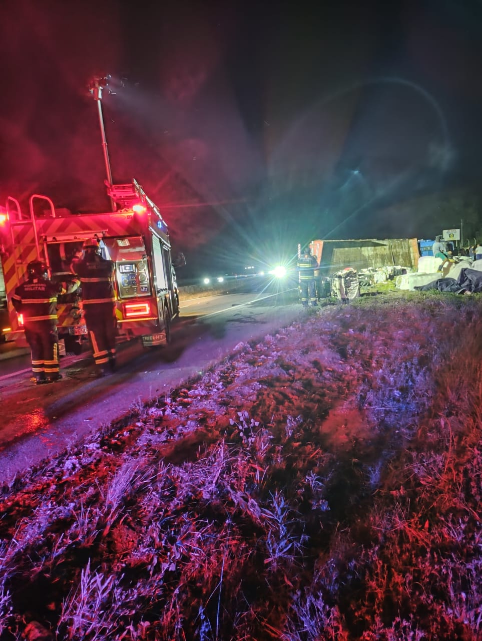 Parte da carga foi saqueada por populares, enquanto outra parte acabou danificada por um princípio de incêndio, rapidamente controlado pelo Corpo de Bombeiros.
