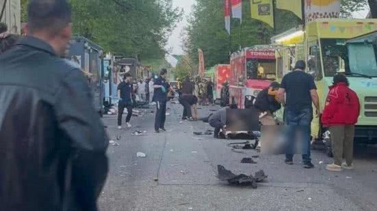 Imagens gravadas logo após o atropelamento e geolocalizadas pela CNN mostraram uma rua arborizada com barracas de comida nos dois lados, coberta de escombros.