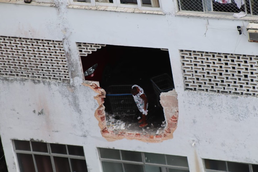 A síndica do prédio vizinho contou que a vítima manobrava o veiculo, quando perdeu o controle da direção, quebrou uma parede do prédio e caiu de uma altura de cerca de cinco metros.