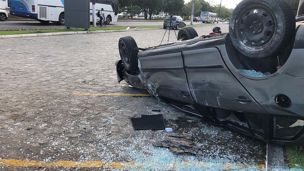 Um carro capotou e invadiu uma loja de veículos na Durval de Góes Monteiro, no Tabuleiro do Martins, no começo da manhã desta sexta-feira (13). De acordo com o que apurou a reportagem do Balanço Geral, da TV Pajuçara, o veículo, modelo Space Fox, seguia no sentido Centro, e tudo indica que o pneu furou, levando o carro a invadir uma via que fica na lateral da Durval de Góes e serve de acesso para o estabelecimentos na região.