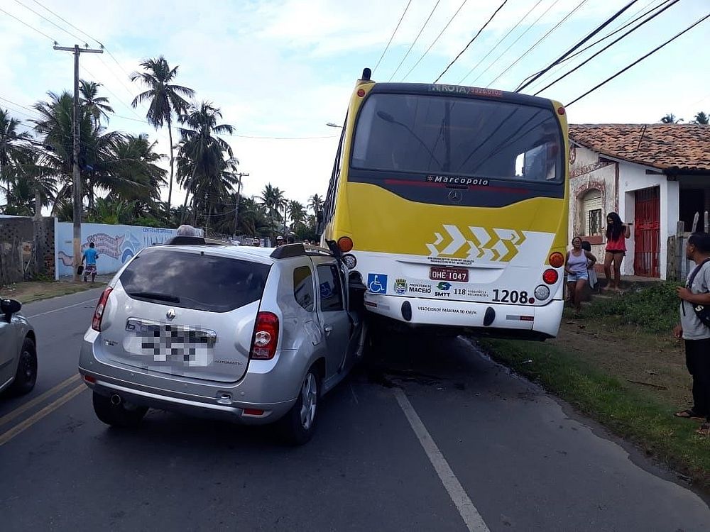 Um carro modelo Renault Duster cinza colidiu com a traseira de um ônibus que estava parado no ponto de ônibus que fica próximo a igreja Nossa Senhora da Conceição, na AL-101 Norte, bairro de Riacho Doce. A ocorrência foi registrada na manhã desta quinta-feira (6).