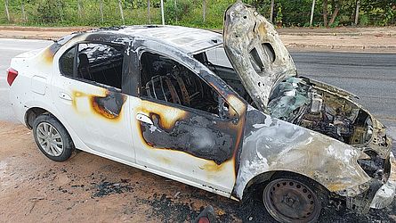 "Entrei em contato com o Corpo de Bombeiros e as chamas já estavam no interior do veículo quando a equipe chegou, por volta de 20 minutos depois. Me deram a previsão de 60 a 80 minutos para retirar o carro daqui", continuou o motorista que trabalha com transporte com aplicativo há aproximadamente seis anos.