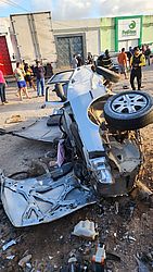 Um grave acidente envolvendo três carros de passeio chamou atenção de quem passou pela Avenida Menino Marcelo, a conhecida Via Expressa, na tarde deste domingo (29).