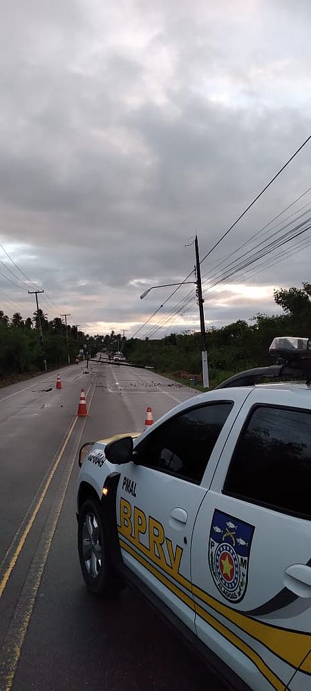 Um carro derrubou dois postes depois de derrapar e sair da pista na AL-101 Norte, em Riacho Doce, neste domingo (13).