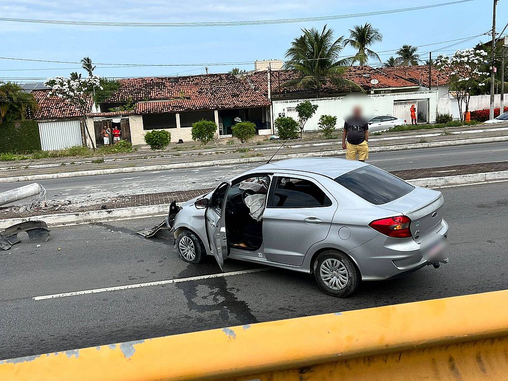 Segundo informações passadas ao TNH1, o motorista do veículo Ford Ka Sedan, de cor prata, perdeu o controle da direção e subiu no canteiro central do trecho da AL-101, vindo a bater de frente em um poste. Com o impacto, a estrutura caiu atravessada na pista e o automóvel ficou com a parte frontal destruída.
