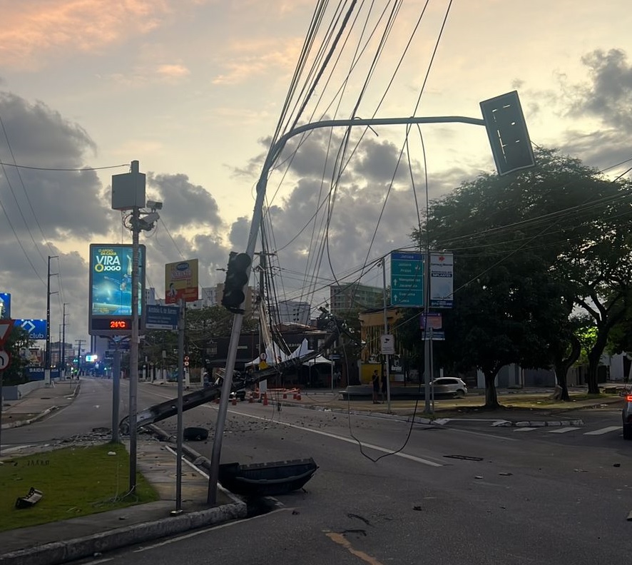O acidente envolvendo um carro provocou a queda de um poste de energia elétrica na Avenida Dona Constança de Góes Monteiro, no bairro de Jatiúca, no início da manhã desta quarta-feira (28). Moradores da região ficaram sem eletricidade. Não houve registro de pessoas feridas.