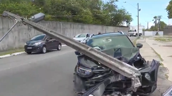 A condutora do veículo contou que levava o filho para a escola quando tentou desviar de um outro carro à frente, momento em que subiu a calçada e atingiu a estrutura de frente. Com o impacto, o automóvel dela ficou com a frente destruída e o poste tombou.