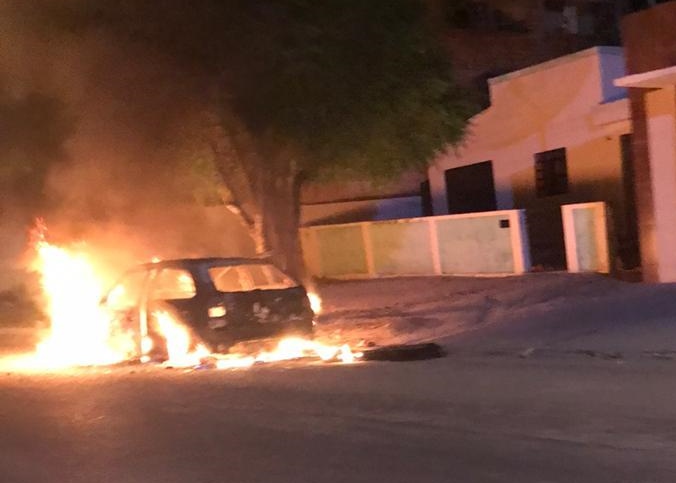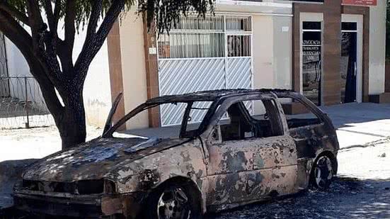 Um veículo Volkswagen ficou completamente destruído depois de pegar fogo na madrugada deste domingo (1), no Bairro Eldorado, centro de Delmiro Gouveia, no Sertão de Alagoas.