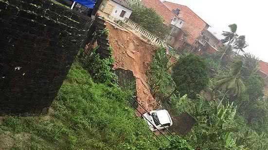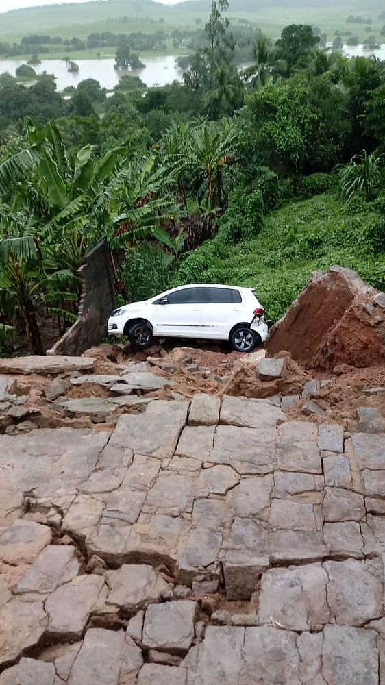 As imagens que o TNH1 teve acesso mostram a cratera aberta no final de uma rua de paralelepípedo e o carro, um modelo Fox branco, que foi engolido pelo buraco que se formou. A região que cedeu é parte de um muro de contenção entre a rua e o terreno.