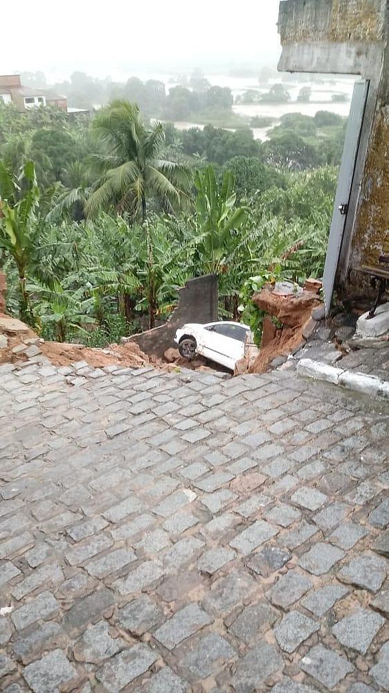 Um carro foi engolido por uma cratera em consequência de um deslizamento, na tarde desta segunda-feira (15), na rua Benedito Barbosa, em Porto Calvo, região Norte de Alagoas.