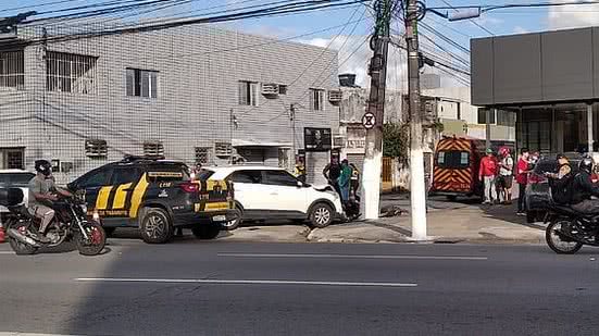 O piloto da moto, de 22 anos, apresentou suspeita de fratura no ombro direito e recebeu os primeiros socorros dos bombeiros. Logo depois, ele foi encaminhado a um hospital particular no mesmo bairro.
