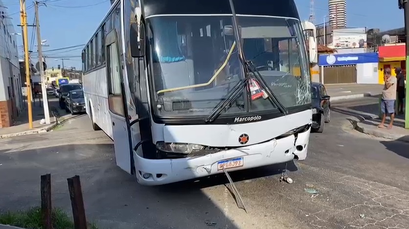Como o vídeo acima apresenta, o carro branco passa pelo cruzamento, e o motorista do ônibus não consegue desviar a tempo e acerta a lateral dele. "Eu estava parado no sinal, quando ele abriu, eu saí. E aí ela atravessou na minha frente e houve a batida", disse o condutor do veículo de grande porte em entrevista ao repórter Williamis Tavares.