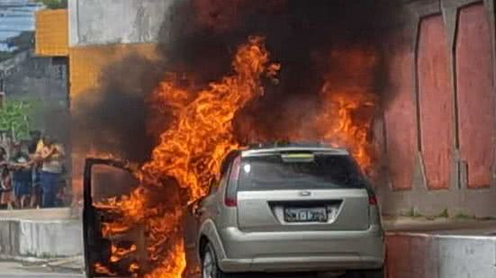 Um carro ficou destruído na manhã desta quarta-feira, 05, após pegar fogo devido a uma suposta pane elétrica, na Feirinha do Tabuleiro, parte alta de Maceió. O motorista do veículo saiu sem sofrer ferimentos. O trânsito da região não foi afetado.