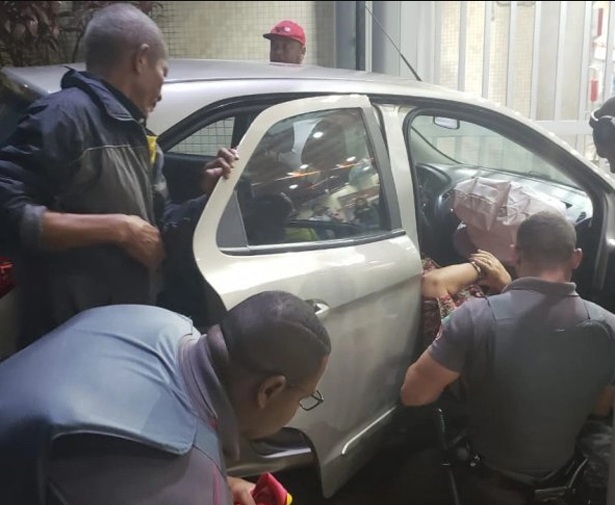 Ela ficou ferida e foi socorrida pelo Samu. Por sorte, eram 23h e não havia pessoas circulando pela escadaria. A motorista estava sozinha.
