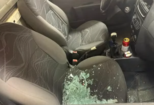 O carro, um Fiat Strada branco, parou próximo a um balcão. Vidros da porta de entrada ficaram espalhados por um banco do veículo e pelo chão da loja, devido ao impacto da batida. A porta de alumínio também foi danificada.
