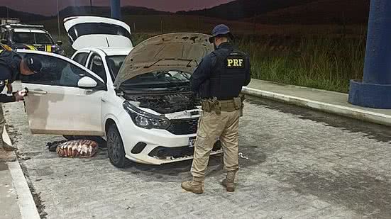 Por volta das 17h20, uma equipe abordou um veículo Fiat Argo, de cor branca. Ao consultar os sinais identificadores, foram constatados indícios de adulteração.