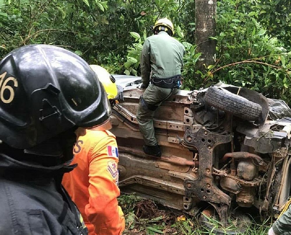 Três viaturas dos bombeiros e a aeronave Falcão 4, do Grupamento Aéreo da Secretaria de Segurança Pública foram acionados ao local para resgatar as vítimas e para conter qualquer possibilidade de incêndio, por conta do derramamento de óleo. Cordas foram usadas para retirar o carro da mata.