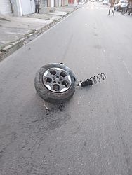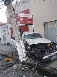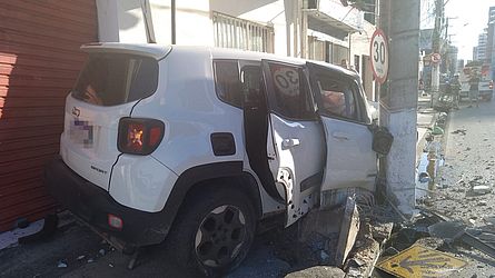 Em imagens enviadas ao TNH1, o veículo, um Jeep Renegade de cor branca, aparece com a parte da frente danificada, incluindo o parabrisa, e sem o pneu dianteiro do lado do passageiro. O item ficou no meio da rua, provavelmente por conta do impacto.