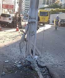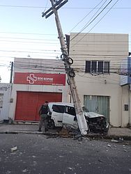 O poste foi entortado com a colisão e outro poste próximo aparece nas imagens com a base parcialmente destruída. Técnicos da Equatorial Energia Alagoas foram ao local para resolver a situação.