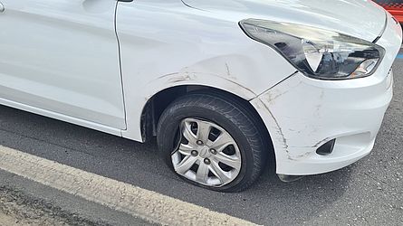 "Ficamos sabendo que o pneu da frente do Ka estourou, do lado direito, do banco do passageiro. Aí a motorista bateu no outro veículo e ele capotou. O rapaz que dirigia o veículo que capotou estava bem nervoso, tomou um copo de água, mas felizmente não ficaram feridos. O pessoal ficou dando assistência a eles", disse.