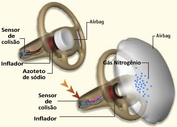 Este dispositivo é constituído de pastilhas contendo azida de sódio e outros aditivos, que são acionados por uma corrente elétrica pelo computador de bordo, dentro de um balão de ar muito resistente, que constitui o próprio corpo do Airbag; este, por sua vez, se enche rapidamente, amortecendo assim o impacto em sua superfície e evitando que motorista e passageiros sofram danos físicos, principalmente no rosto, peito e coluna.