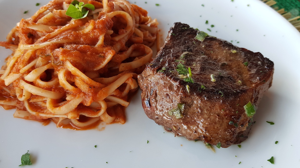 Além do mar – Uma das novidades é talharim com molho de tomate da casa acompanhado no filé na manteiga com ervas.