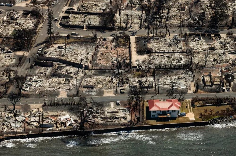 A casa sobreviveu da mesma forma que a igreja católica Maria Lanakila, também em Lahaina, ficou ilesa pelo incêndio, que até agora matou 106 moradores, no meio de grande destruição. Apenas cinco pessoas foram identificadas até agora, já que autoridades disseram que muitos dos restos mortais estão carbonizados. Há, ainda, centenas de desaparecidos.