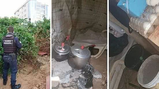 A equipe foi até o local e identificou o abrigo subterrâneo, que tinha cimento nas laterais, madeira para sustentar o teto e até objetos pessoais, como panelas, pá, facão, alimentos armazenados e cadeira de praia.
