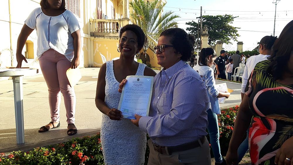 Já Rosana não escondeu a emoção de oficializar a relação perante a Justiça. “Ela foi uma surpresa na minha vida. Eu sou a primeira surda negra em Alagoas, represento essa categoria. Eu me sinto muito feliz por estar com ela. A Betânia é uma excelente pessoa”, afirmou com a ajuda da intérprete Roberta Rafaelle, que intermediou a entrevista.